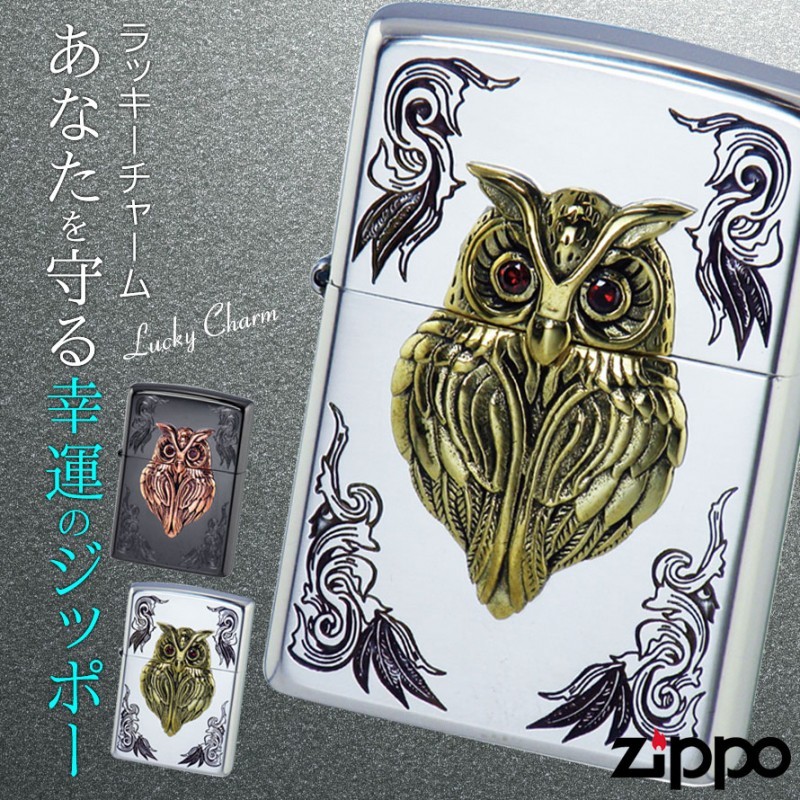 最適な材料 ライター フクロウ ラッキーチャーム Zippo ガーネット かっこいい 高級 お守り ジッポー 黒 メタル貼り ニッケルブラック ジッポ その他 Labelians Fr